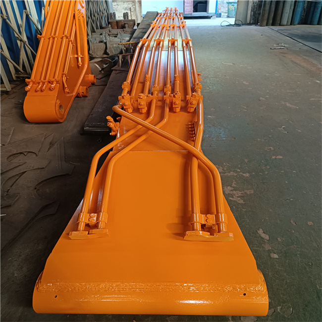 挖掘機(jī)加長臂有兩段式挖掘機(jī)加長臂和三段式挖掘機(jī)加長臂,兩段式挖掘機(jī)加長臂主要應(yīng)用于土石方基礎(chǔ)和深塹挖掘工作,河道整治;三段式挖掘機(jī)加長臂主要應(yīng)用于高層建筑的拆卸等工程。根據(jù)杠桿原理和力學(xué)原理,加長臂挖掘機(jī)的受力比之前減少,應(yīng)該最好不要去重工作的場所施工。